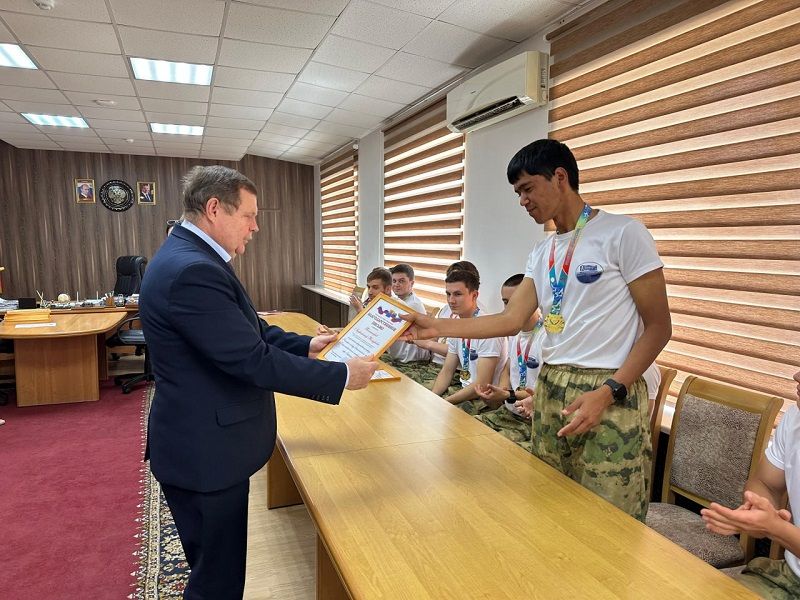 Глава городского округа "город Кизляр" Александр Ильич Шувалов вручил благодарственные письма лично каждому участнику команды "Батальон РПК" за достойное представление города Кизляра и победу в региональном этапе Всероссийской военно-патриотической игры "Зарница 2.0".